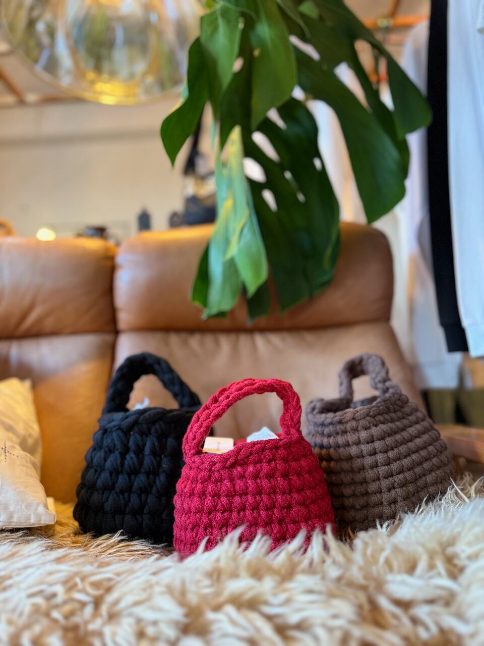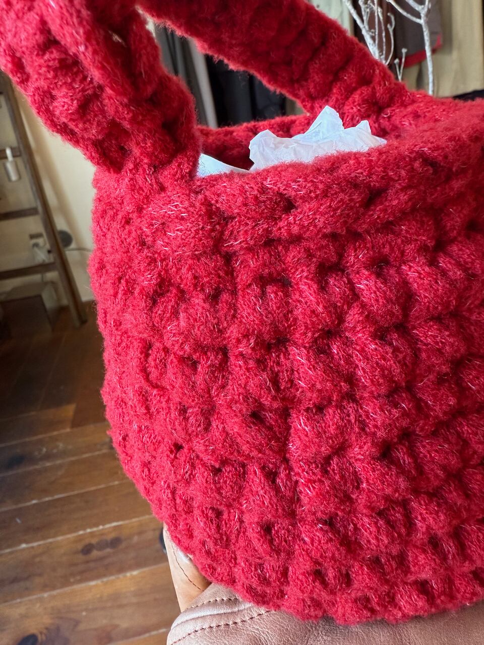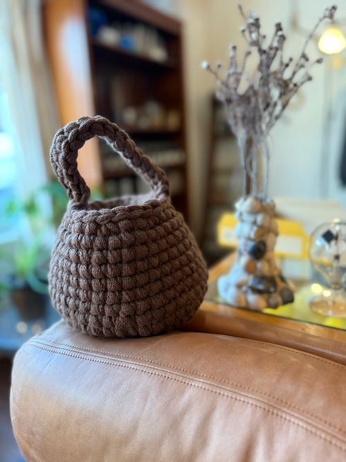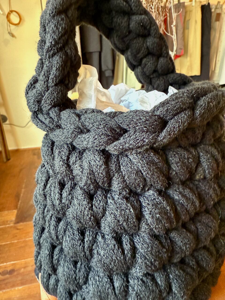 太い糸でしっかり手編みで編むことで自立するほどしっかりしています。