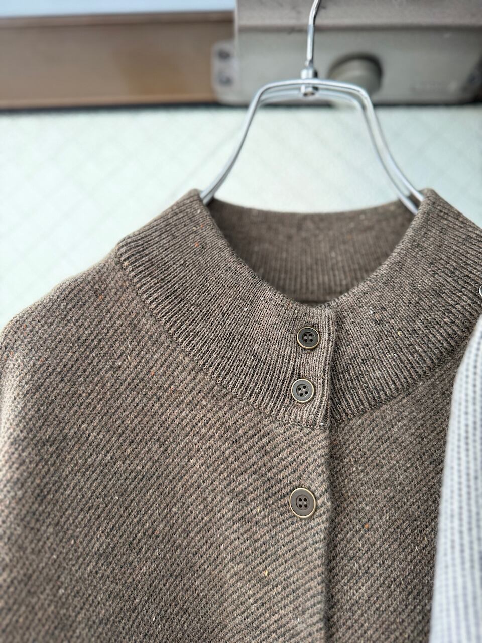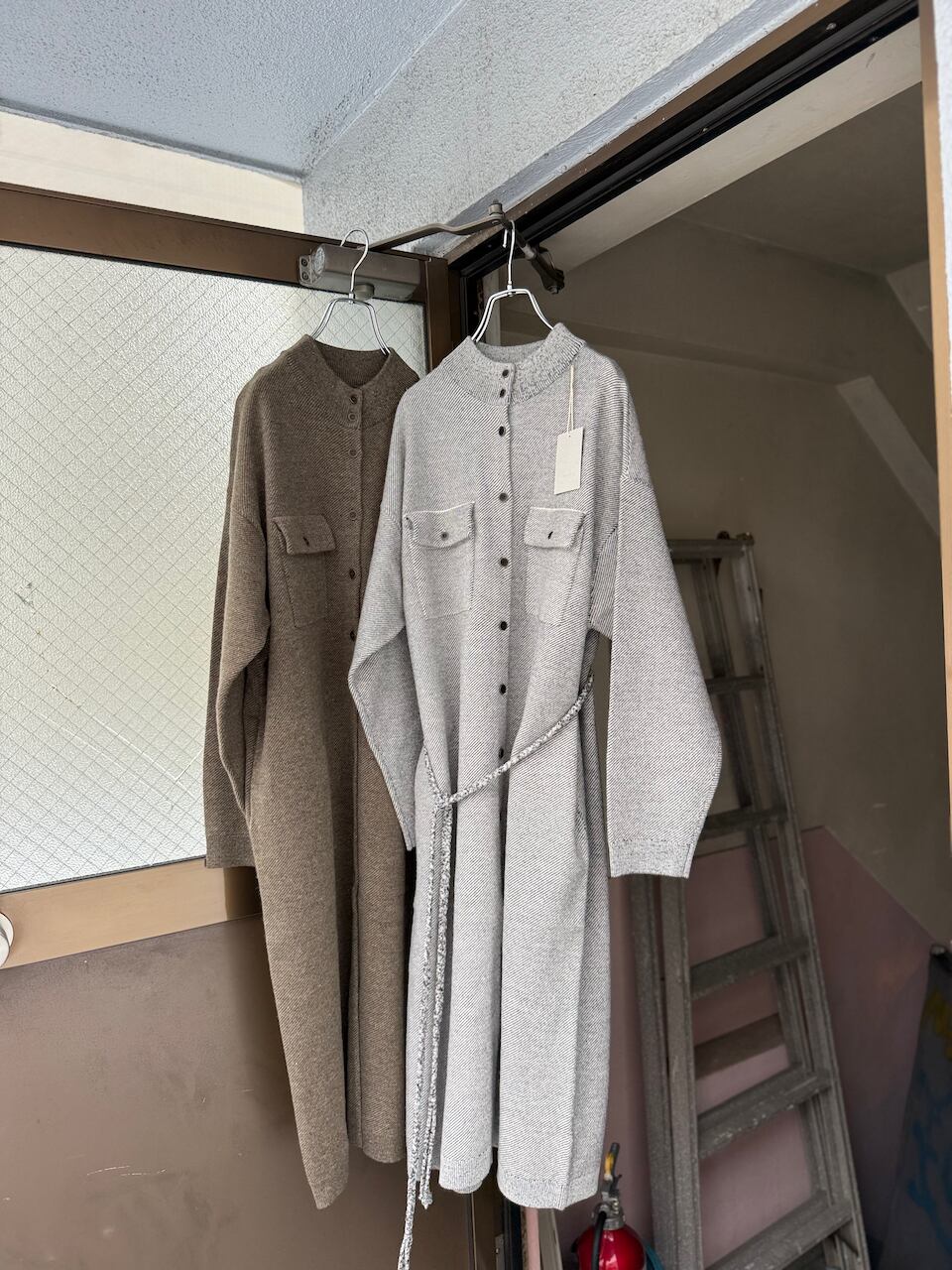 前開きのワンピースカーディガン。カーディガンと言うよりコート的に着用できます。
