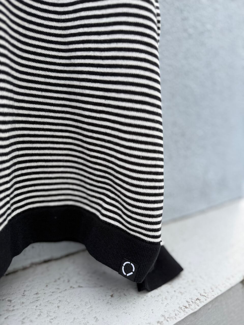 袖のリブが同じピッチでボーダーから無地に変わっているのがユニークです。