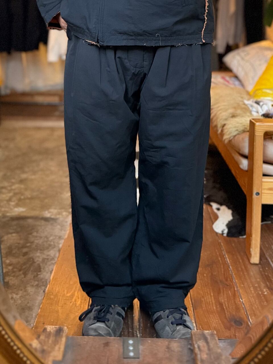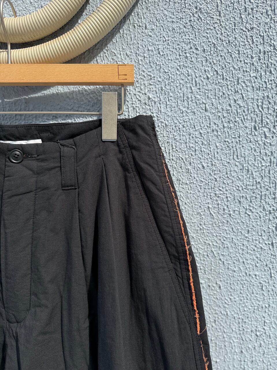 薄手のローン生地を3枚重ね、裏地にフリースを張ったボトムス。