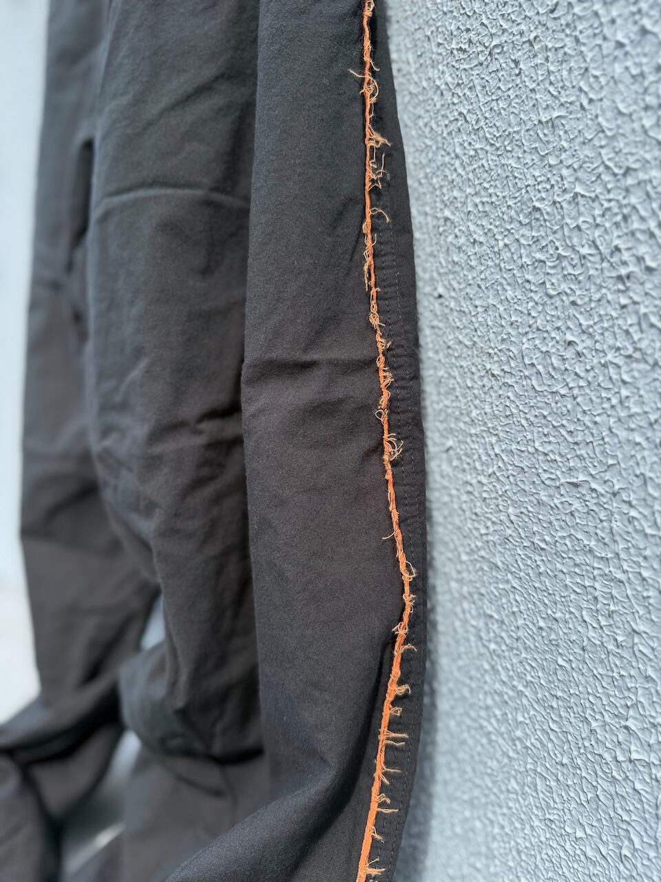 またサイドの縫い代をわざと表に出し、カットオフに。