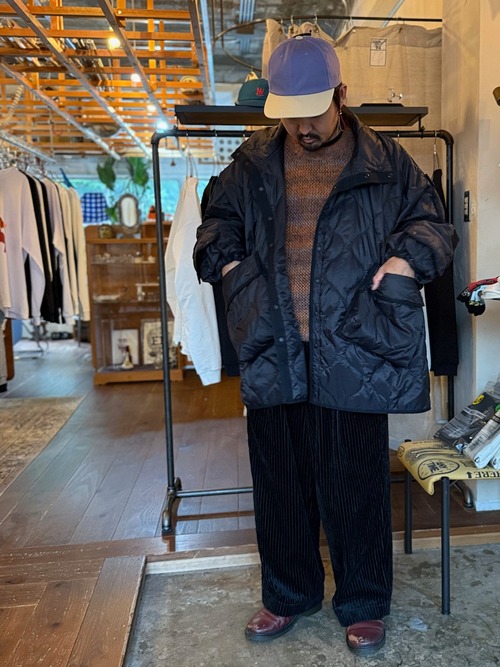 そんなディティールはさておき、かなり広い身幅にキルティングの落ち感、ハイネックなど、見た目にも素晴らしい仕上がり。