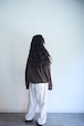 フロントはケーブル編みからグラデーションのように線になって消えるデザイン。
