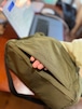 前面にはクッション材を仕込んだポケットがあるので、スマホやモバイルバッテリー、財布、電子タバコなどなど収納ください。