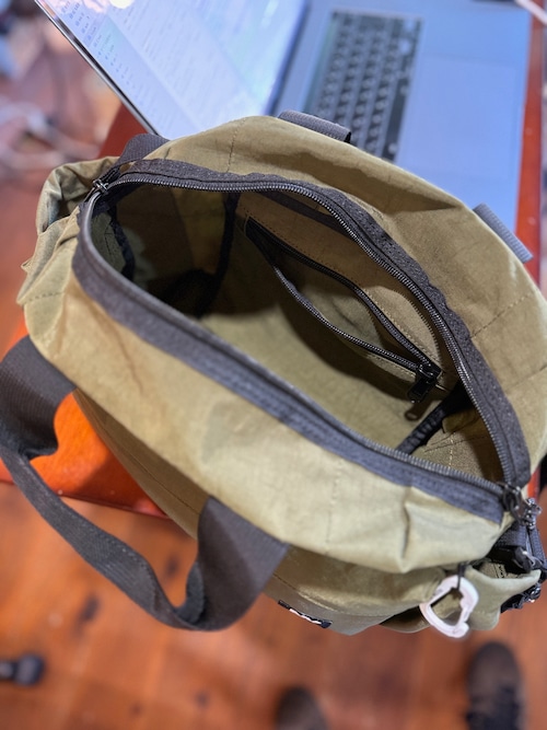 メインの収納部分は生地1枚のシンプルな構造となっており、見た目以上の収納力。野球用のグローブやリカバリーサンダルなども入ります。
