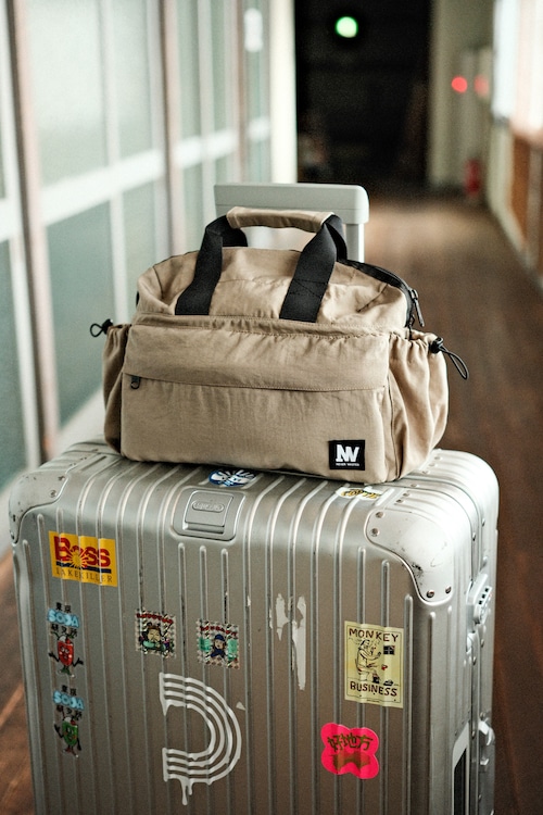 スーツケースにキャリーオンできるミドルサイズのBAG。旅先でのセカンドバッグとして、日帰りや一泊であれば単体でも対応可能な便利なヤツです。