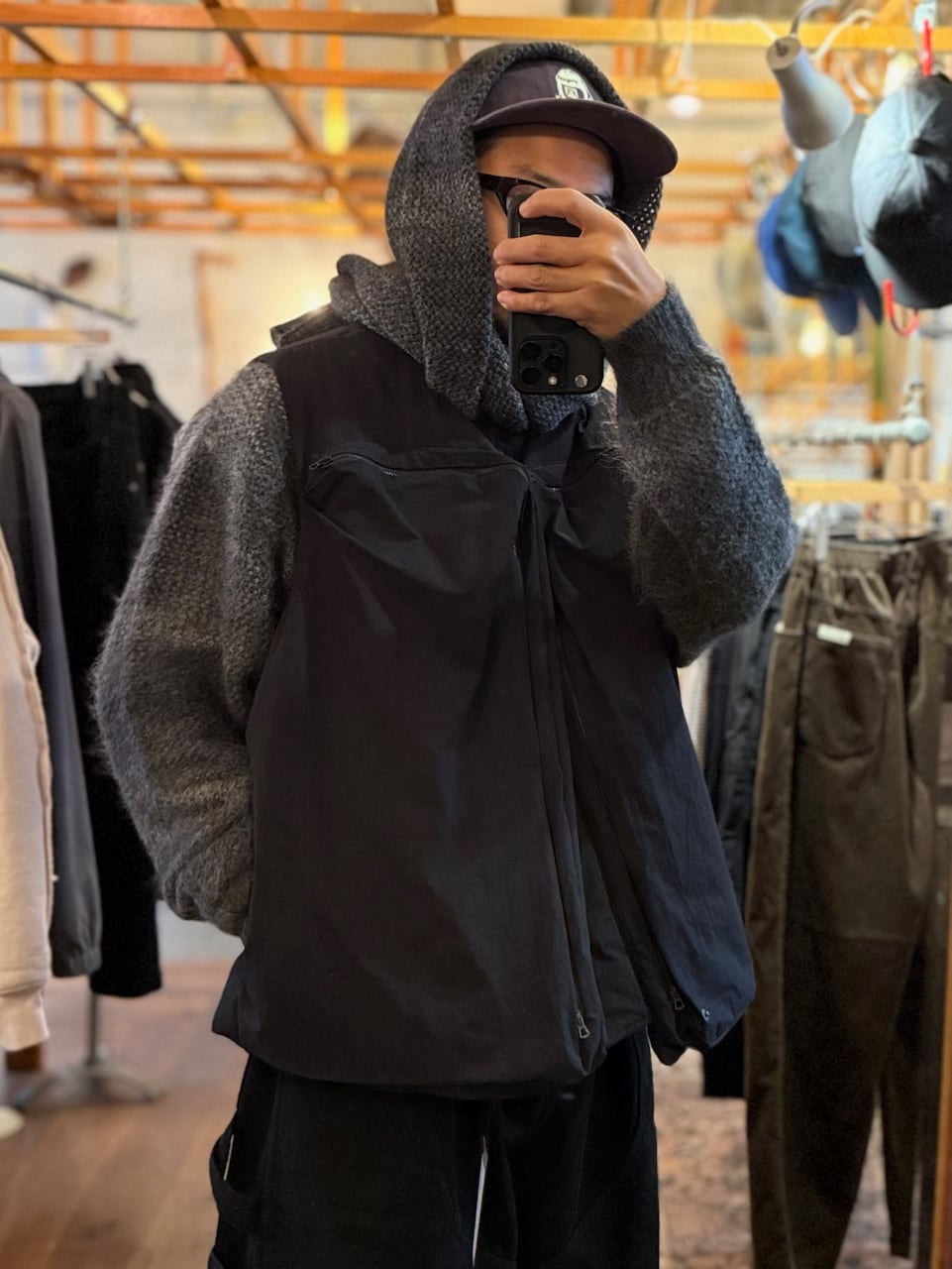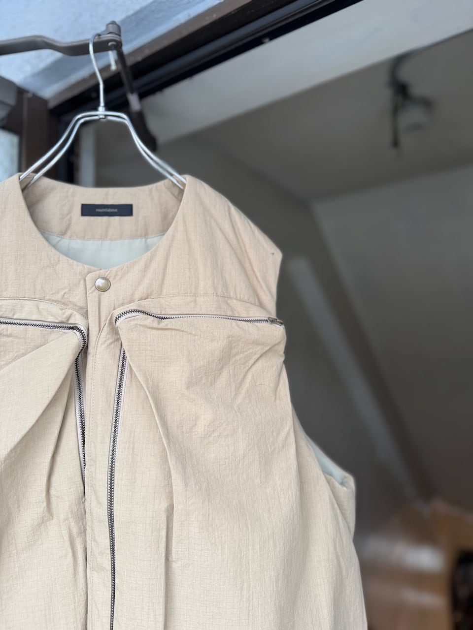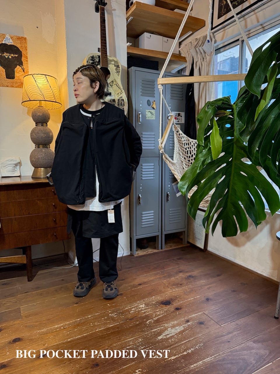 前身の左右にバッグのような大きなポケットが特徴のベスト。