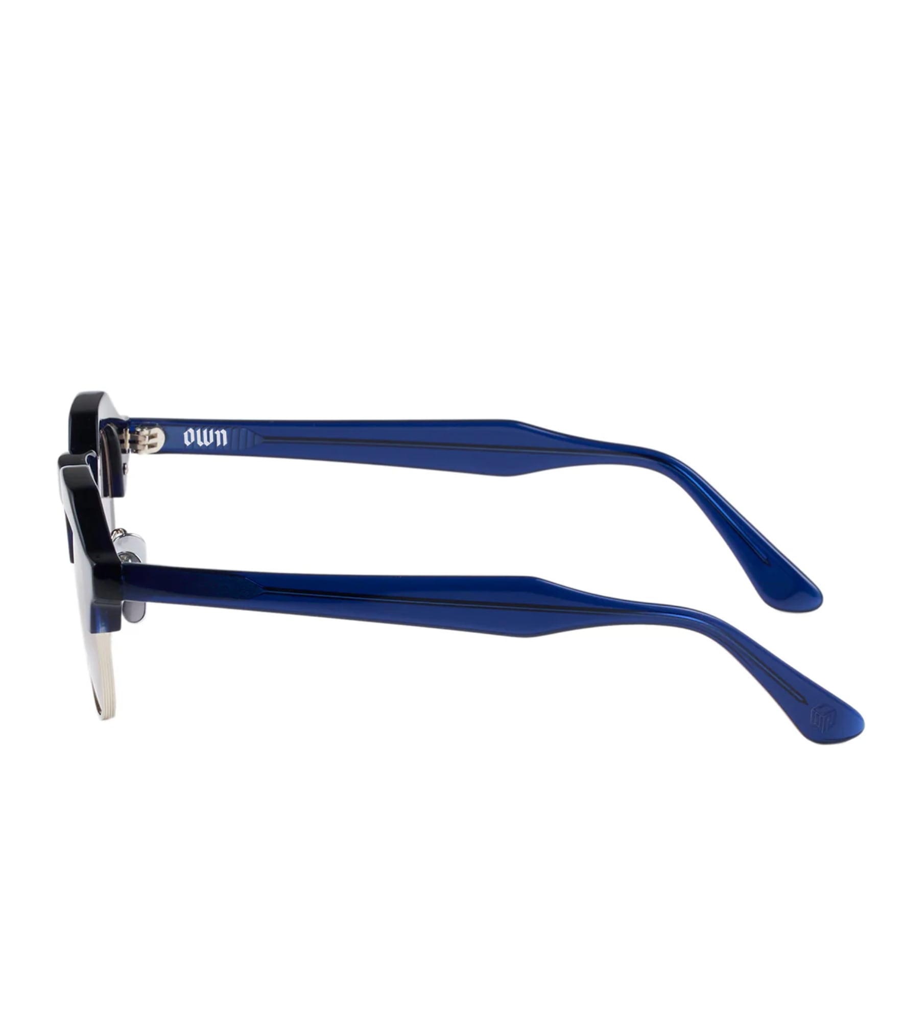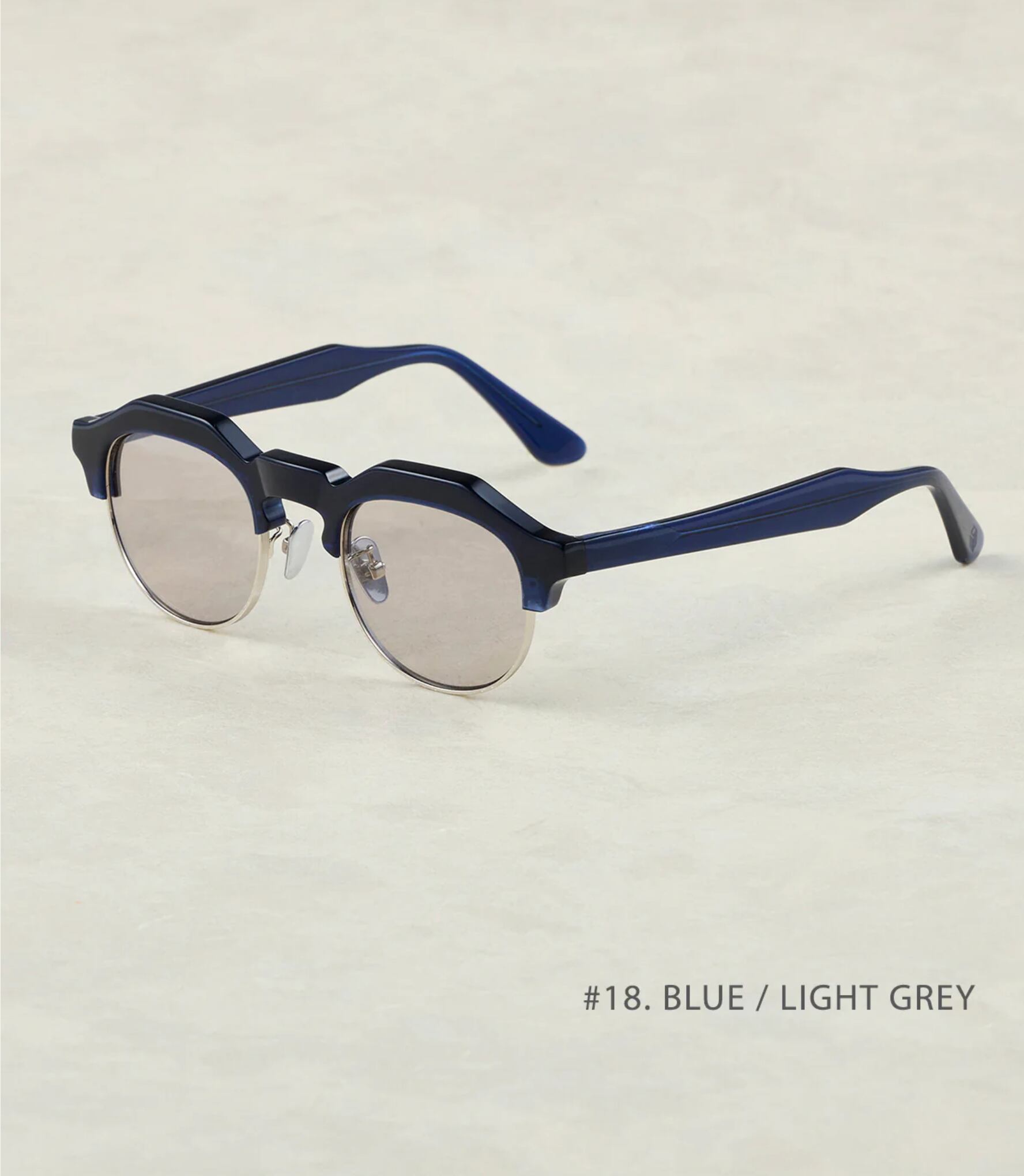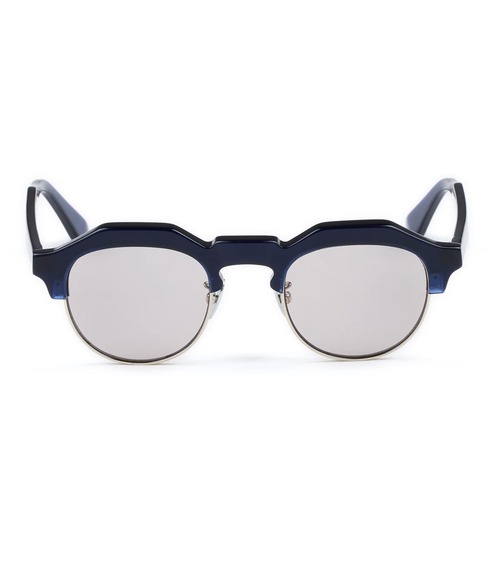 クラウンパント型のブローラインに、彫金を施したアンダーリムを配すことにより、武骨さの中に気品が見える仕上がりに。