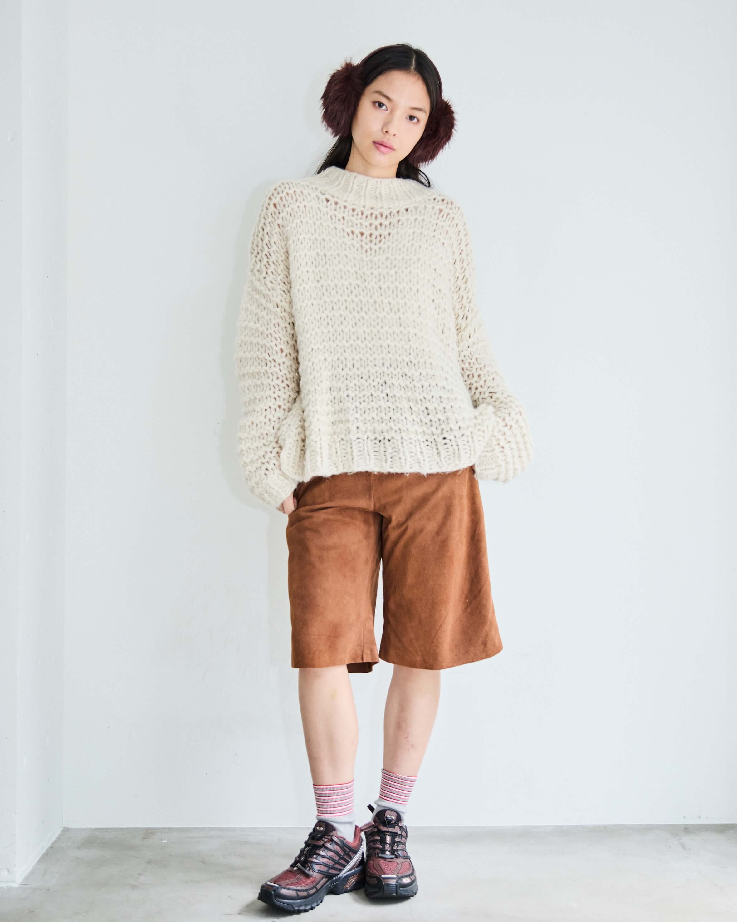 キャップなニットビーニーと合わせて冬の寒い時期にも気分を上げてくれるアイテム。