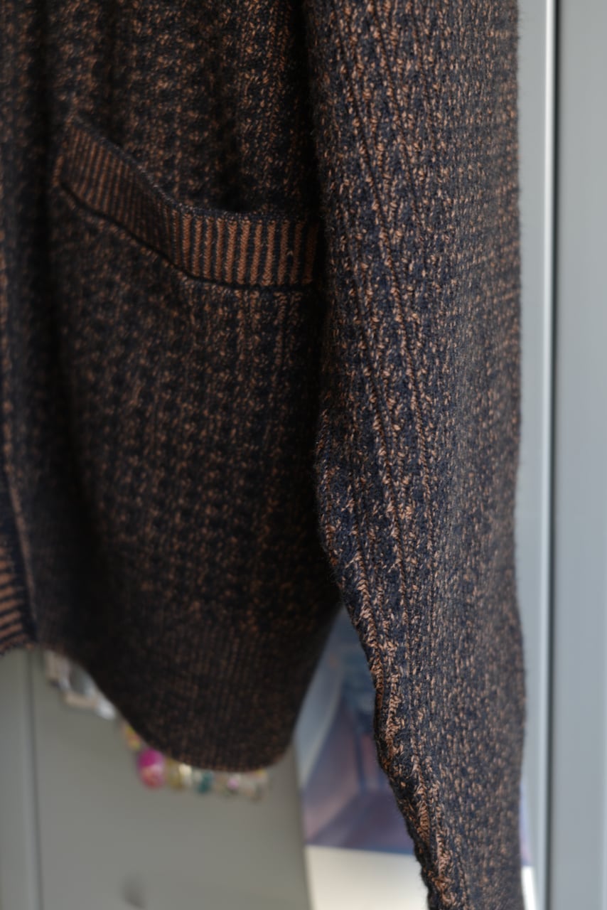 一般的に大きな編み地のケーブル編みですが、細かくすることで上品さも。