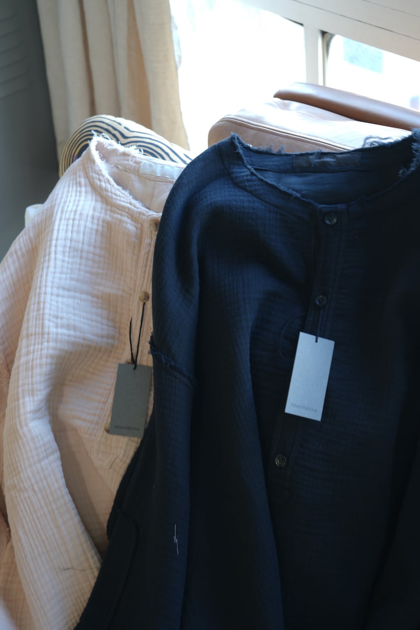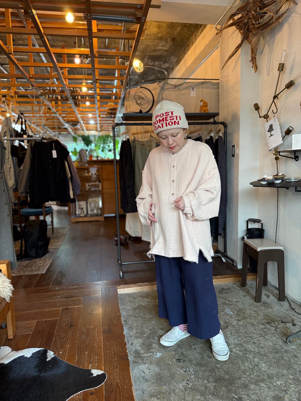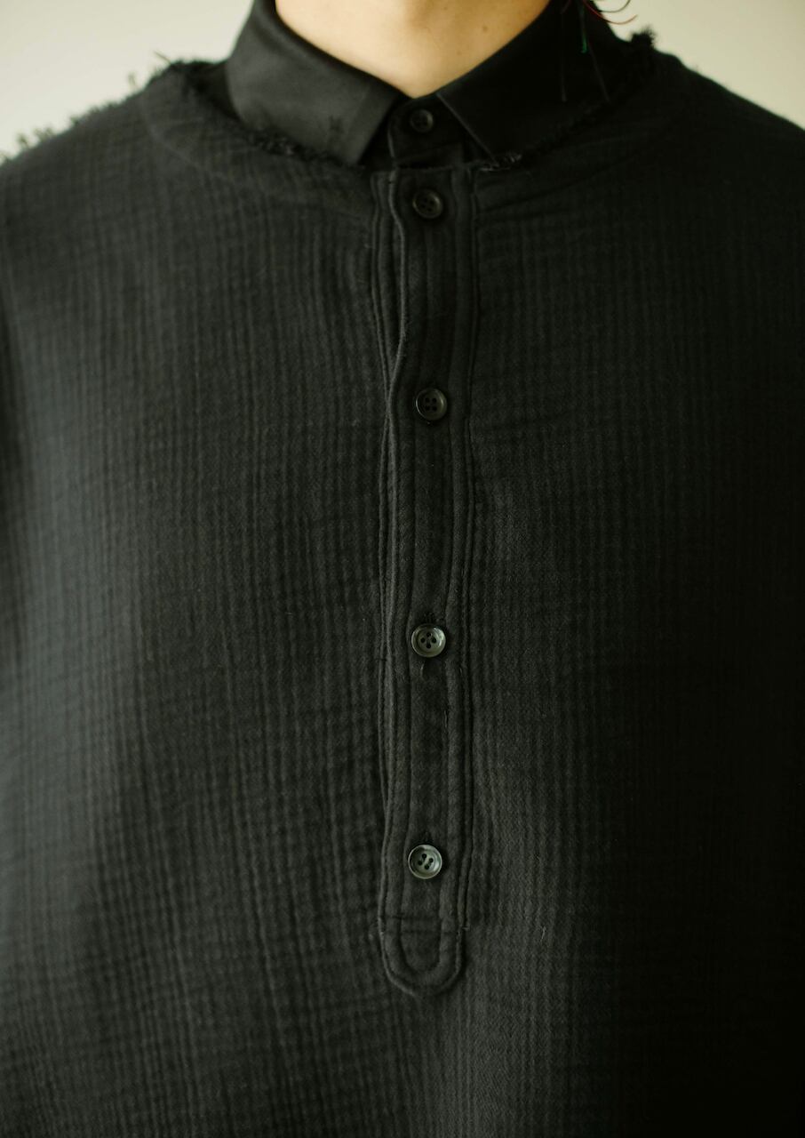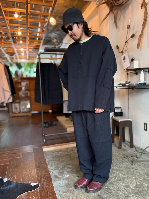 アムンゼンという凹凸が特徴の生地を使用したヘンリーネック。