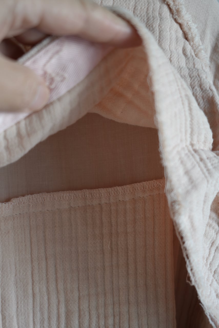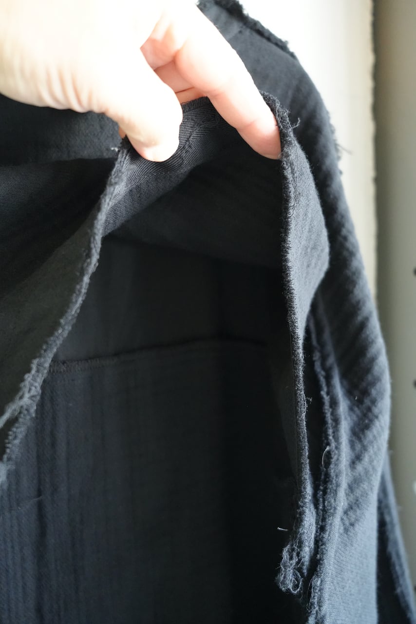 縫い代を外に出し、カットオフにすることで表情のある仕上がりに。