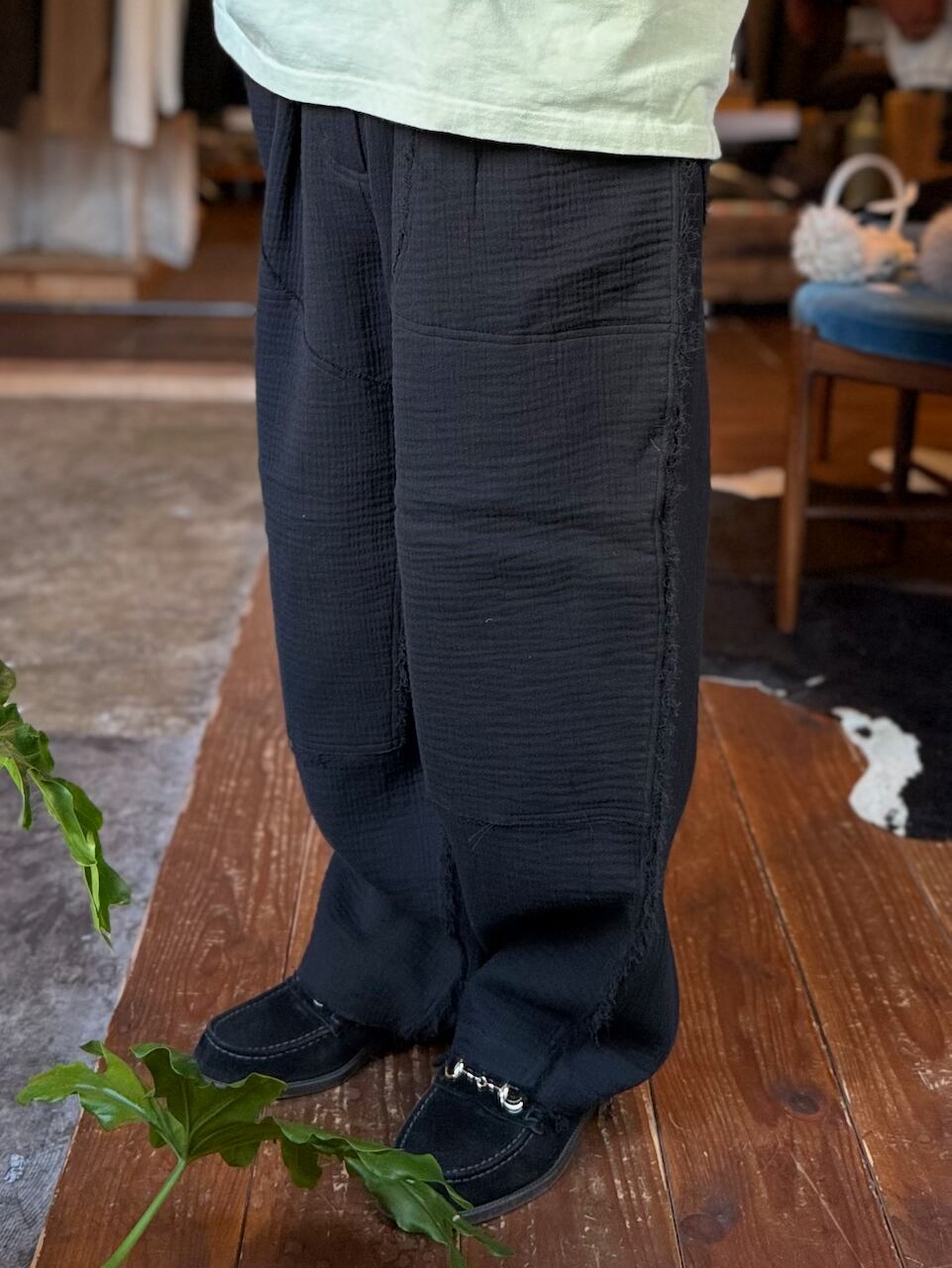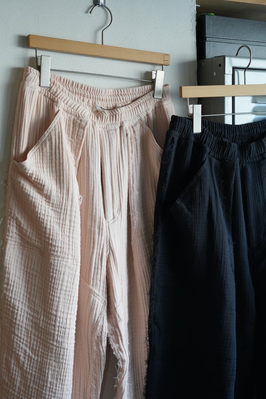 アムンゼンという凹凸が特徴の生地を使用したボトムス。