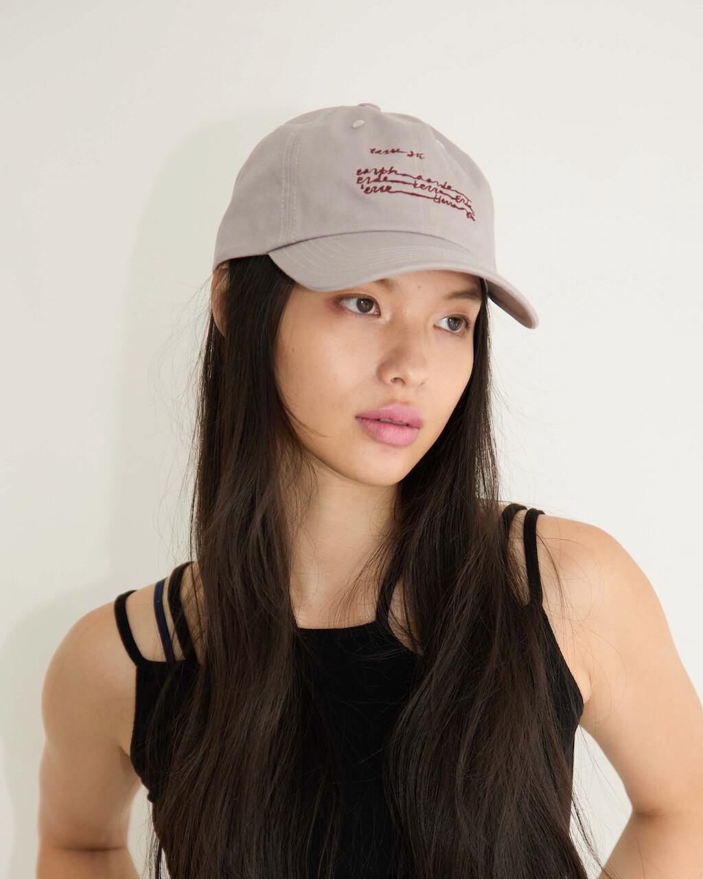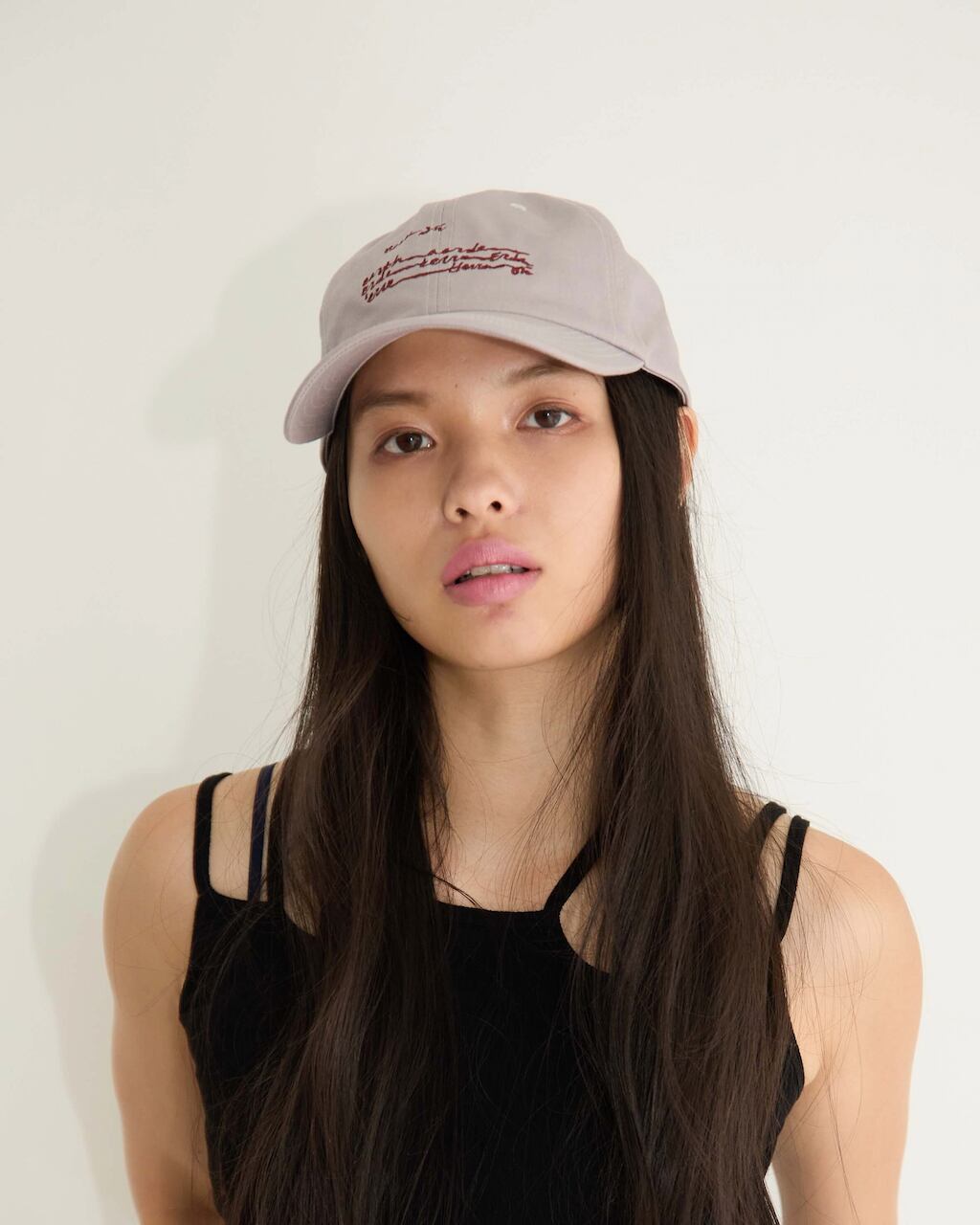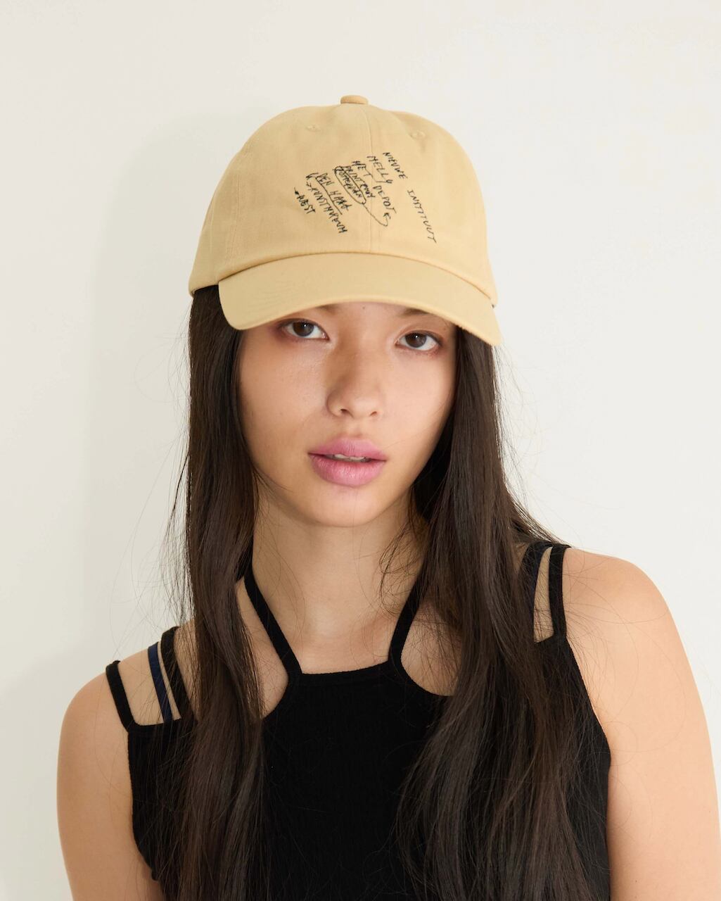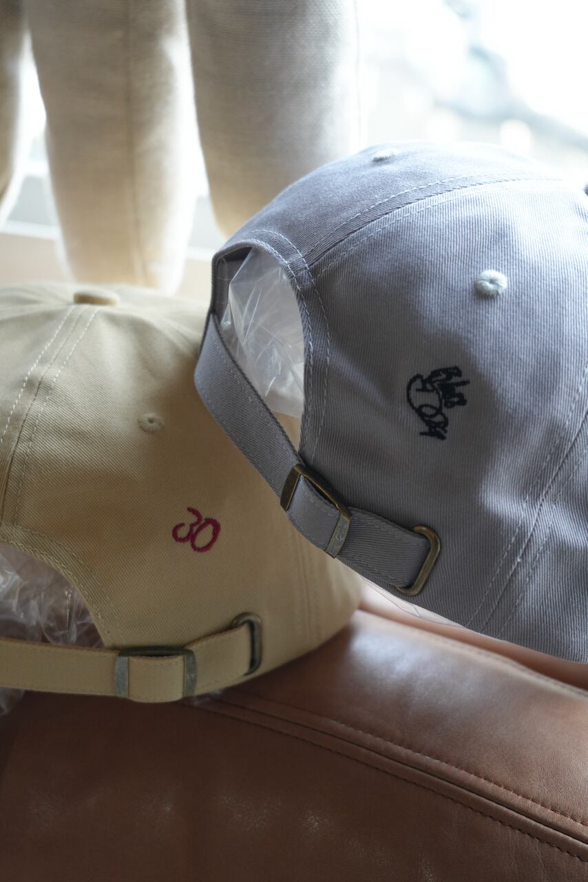 手書きで書かれた本のメモ、道端のタイル、付箋のメモ書きなどからトレースし、ロゴに仕上げて刺しゅうした落書きシリーズのCAP。
