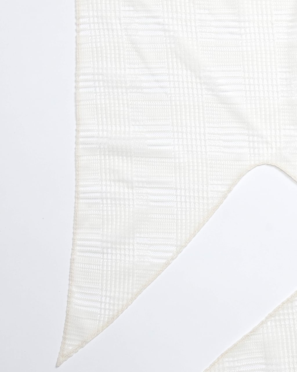 三角に二つ折りにすると結べる先が4箇所になるため、頭に巻いてボリュームを調整したり、バラクラバのように巻いたりできます。