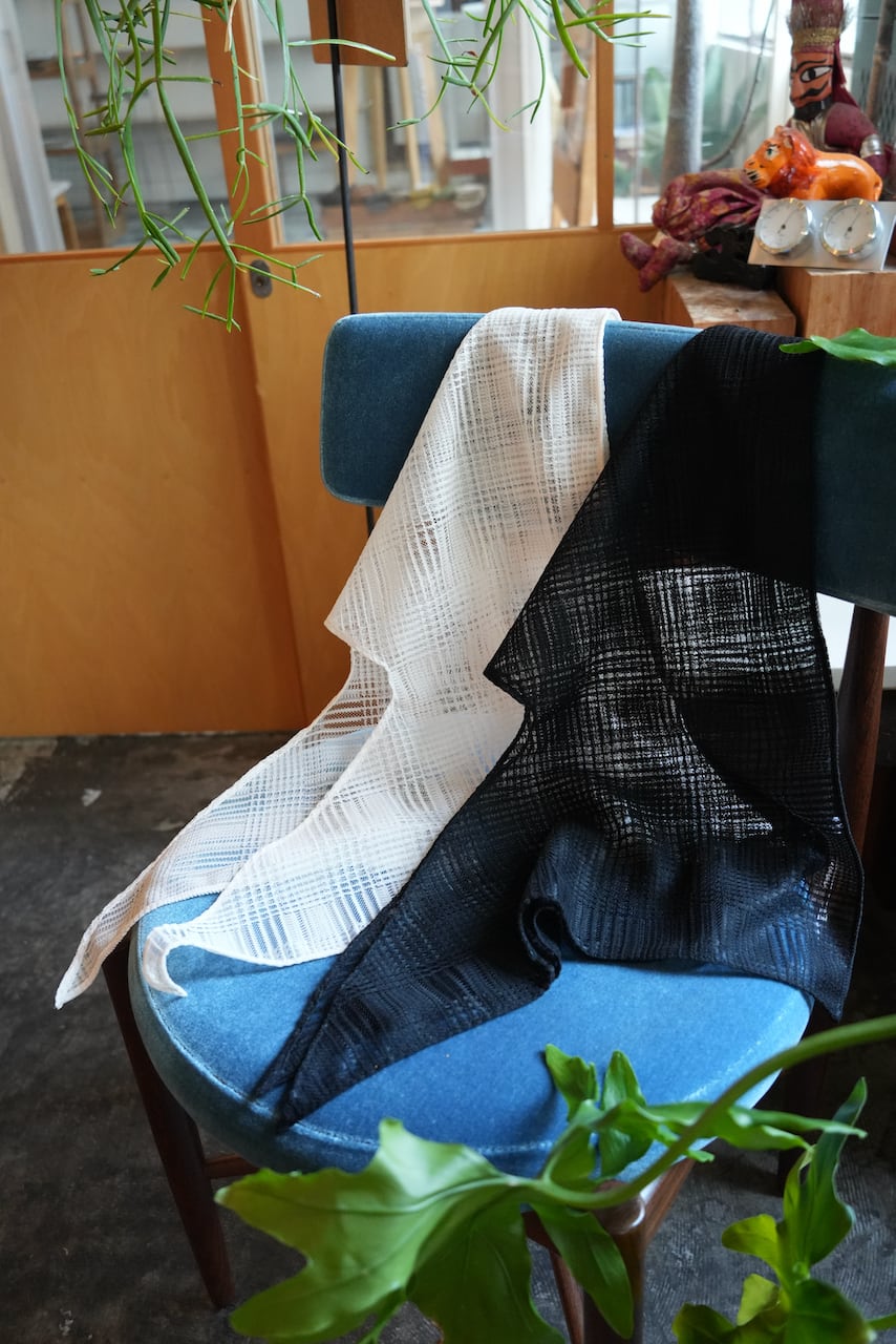 55cmサイズのスカーフにスリットを入れた新しい形のチュールレースアクレサリー。