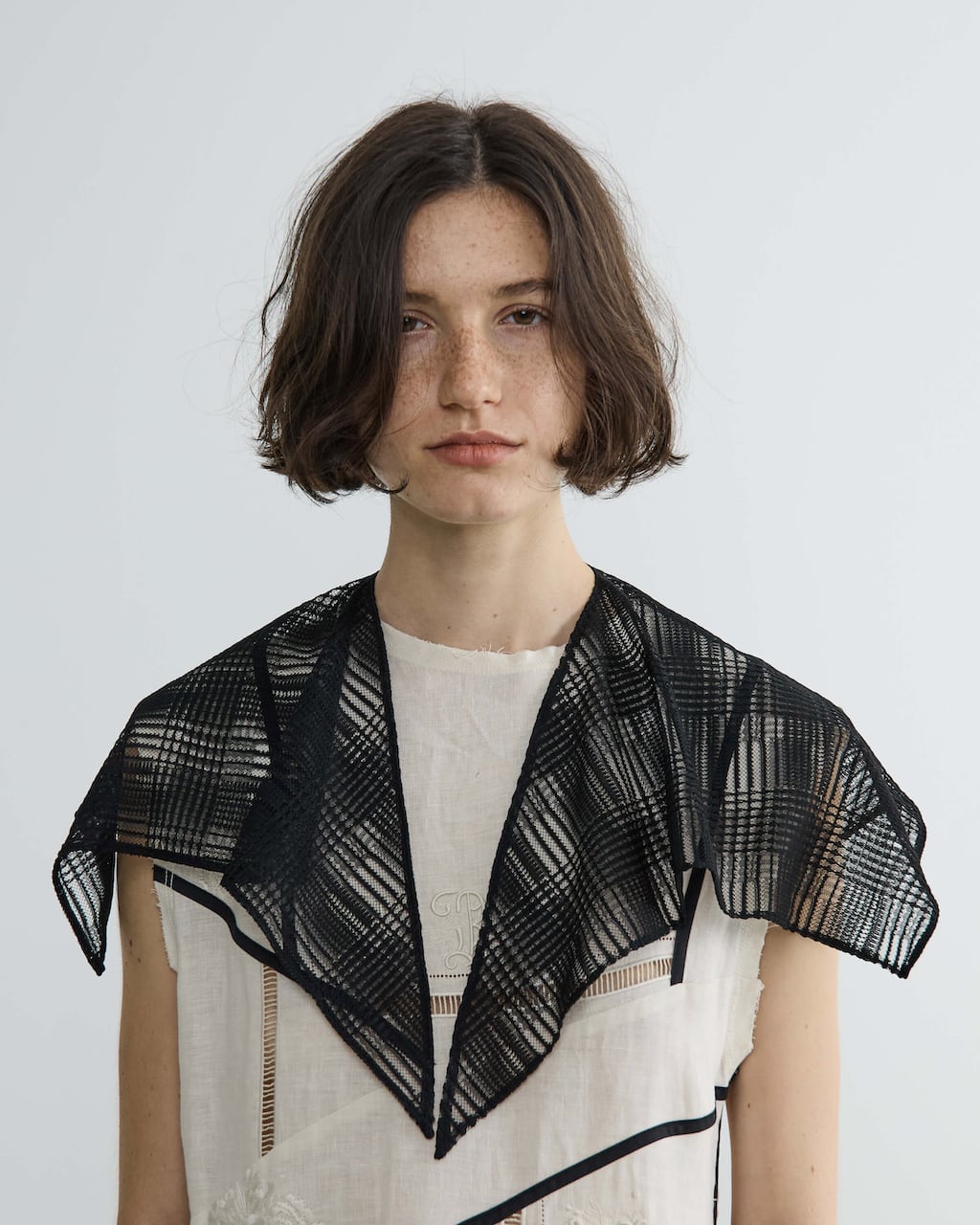 スリット部分を首に合わせて巻くと大判のつけ襟のように。