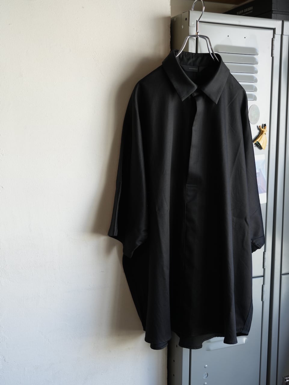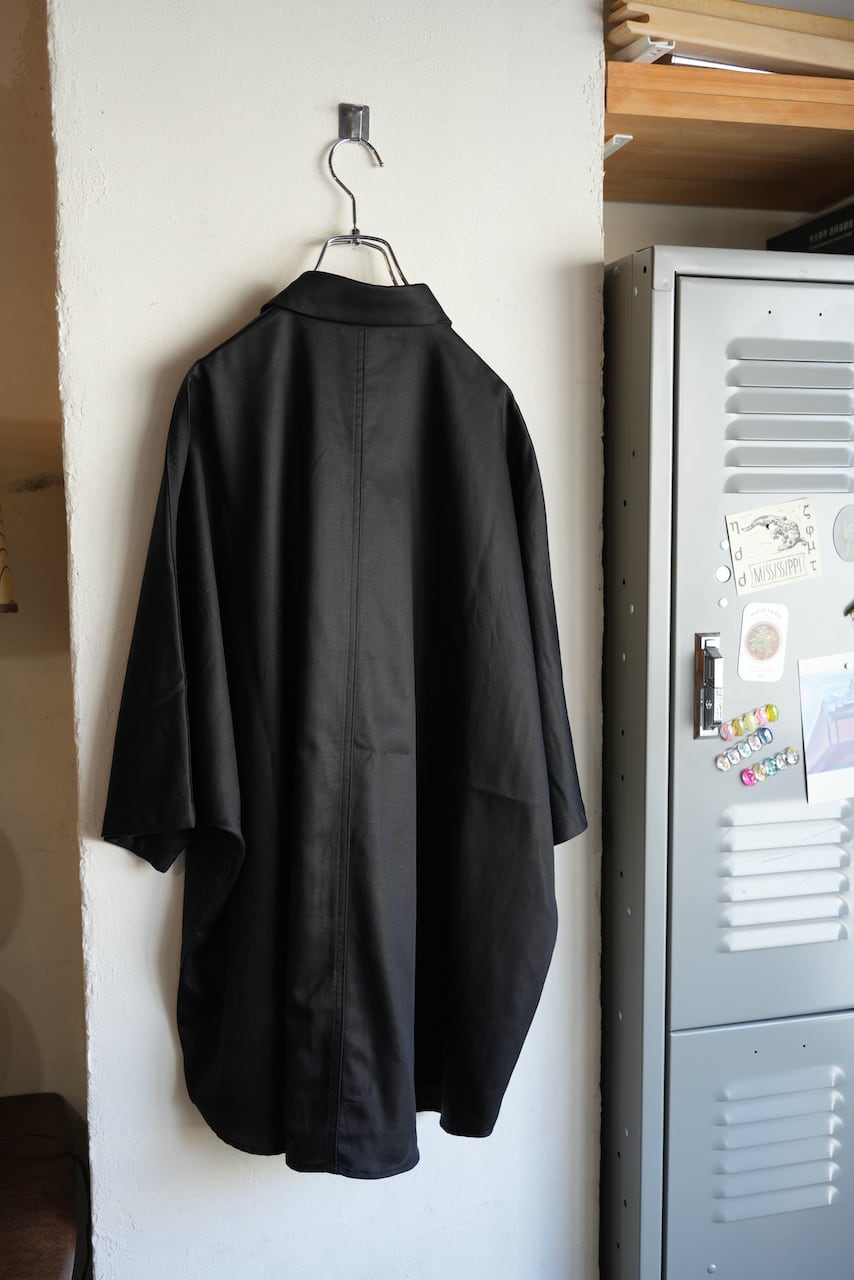 ドルマンスリーブで、肩接ぎ、脇の縫い代は外側に出すことでテープを叩きつけたような見た目に。