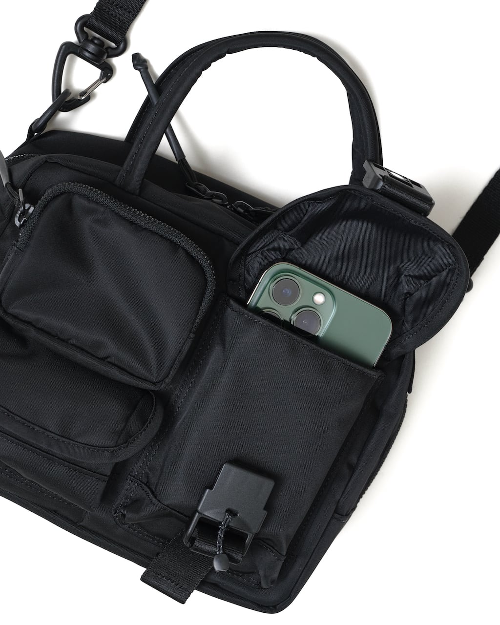 ・フロントに配置された複数のポケットが特徴的な2WAYバッグ。
