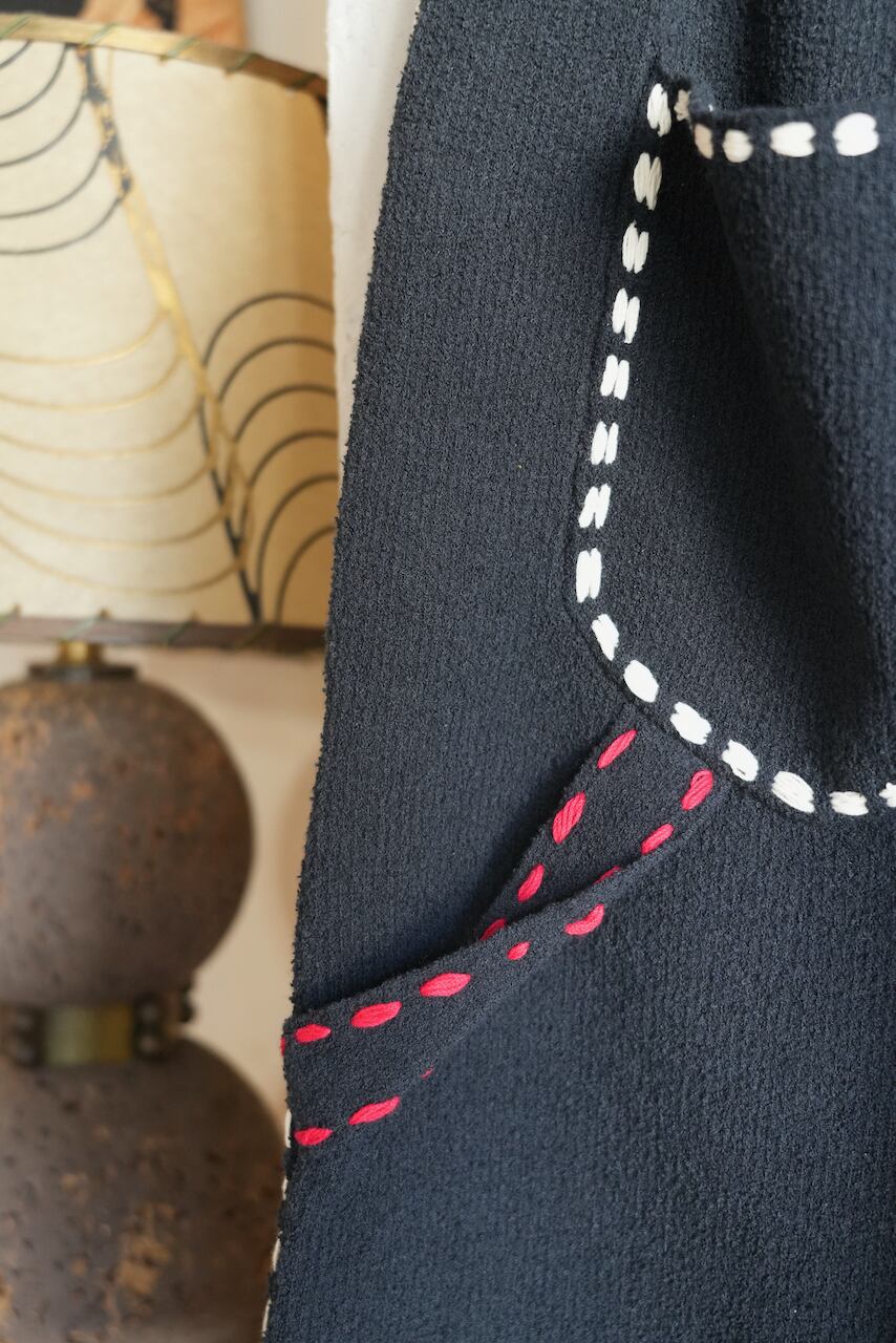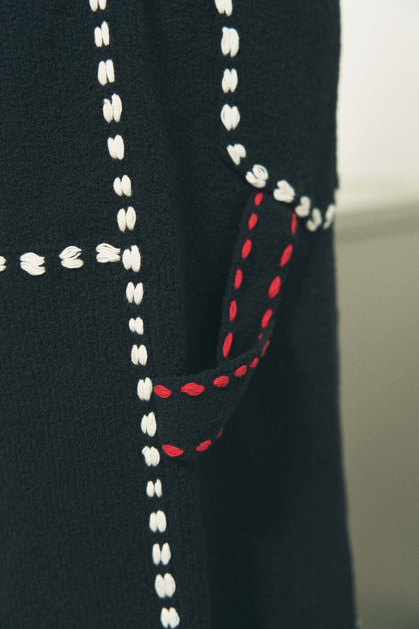 白のステッチ糸もドライなコットン糸にしています。